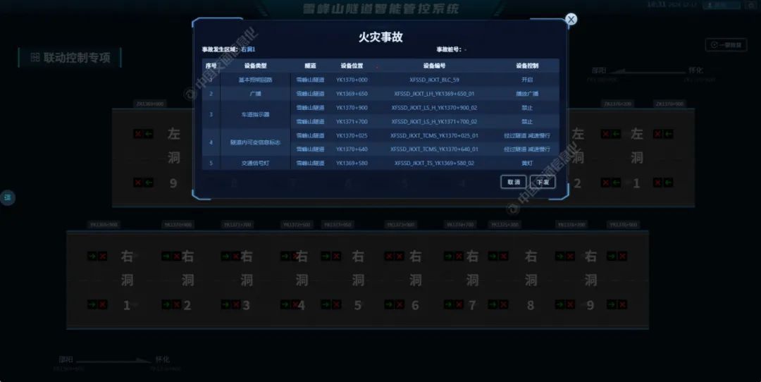 雪峰山隧道位于湖南省怀化市,是G60沪昆高速重要组成部分,是湖南省最长高速公路隧道,至今已安全运营17年。雪峰山隧道属于湖南省内较繁忙路段,社会经济效益显著,但当前面临三方面的挑战:一是车流量逐年上升,交通事件频发,安全形势严峻;二是各个系统独立控制,缺乏数据交互和联动控制;三是对科学养护与高效管控的基础数据支撑不足。在此背景下,雪峰山隧道智慧化提升项目聚焦1个平台(即雪峰山隧道智慧运维平台)、2项专题研究(即雪峰山隧道突发事件分区应急预案、雪峰山隧道通风控制方案)、3大应用场景(即数字设施、科学养护、智能控灾)、N项技术装备,从而解决基础数据支撑、专业化养护、应急处置等问题。该项目入选中国高速公路信息化典型案例、国家公路现代化养护工程试点、交通基础设施转型升级示范,旨在提供一套可复制、可落地的“两型两性”(智慧型、低碳型和安全性、强韧性)隧道智慧化提升方案,引领湖南省隧道数智化转型升级。在数字设施方面,通过基础数据采集、设施解析编码、智能信息标签、数据资源库、轻量化建模、设备集成控制,构建“实体隧道”与“数字隧道”两个体系。快速采集雪峰山隧道空间地理、结构信息、实景影像等数据。基于激光点云技术采集隧道地理信息、桩号、360影像及激光点云数据,快速提取结构数据;通过OCR技术采集竣工图纸与历年检测、养护维修、交通环境等业务数据。建立雪峰山隧道实体解析方法与编码标准,实现土建结构、机电设施构件级、唯一性、精细化管理。搭建一个快速感知、查阅、编辑、更新设施基本信息、技术状况、病害数据、养护信息的交互载体。制定在役隧道动静态数据标准,搭建全要素数据库,实现在役期数据汇集、存储与共享。其中,数据资源类型主要包括静态数据(基础信息、结构信息、地质环境、图纸资料等)、动态数据(技术状况、病害、养护维修、交通量、运行环境、交通事件等)、可视化模型(基础设施对应地理信息、三维模型、360全景、道路影像等)。基于激光点云、倾斜摄影、OCR图纸扫描技术,快速实现土建结构及部分机电设施快速单体化、对象化。集成隧道内通风、照明、交通控制与诱导等25类机电设备,实现可视化统一、分类及标准化控制。在科学养护方面,构建多维检测、状况评定、处治诊断、需求分析、养护决策、计划编制、效益评估等科学养护决策体系,提升养护工程实施的精准性、计划性和资金使用效益,践行养护工程全周期理念。多维监测包括土建结构的日常巡查、经常检查、定期检查与结构监测,以及机电设施的日常巡查、经常检查、定期检测与在线监测。其中,土建结构健康监测包括裂缝宽度、内部水压力、衬砌表面应力等,根据最新规范要求,后期新增隧道衬砌结构表观裂缝和渗漏水病害、不良地质地段路面隆沉、洞口水流量洞门边仰坡与端墙式洞门变形、洞内外气候等监测内容。机电设施在线监测包括5大系统(通风设施、照明设施、交通监控设施、紧急呼叫设施、消防设施)、25类937个带电设施的运行状态统一在线监测。其中,在25类监测设施中,通风设施包括射流风机、轴流风机、CO/VI、风速风向检测仪;照明设施包括灯具、LO/LI;交通监控设施包括车检器、情报板、限速标志、交通信号灯、车道控制标志、区域控制器;紧急呼叫设施包括广播主机、紧急电话;消防设施包括消防主机、横通道门、水泵。异常大厅汇聚雪峰山隧道土建结构/机电设施日常巡查、经常检查、定期检查、结构(在线)监测的病害(故障)数据,基于病害诊断模型、即时技术状况评定模型,进行隧道安全等级评估与及时预警、病害处置类型与措施的智能诊断,实现异常数据统一管理与处置跟踪。养护决策包括养护需求、养护模型、方案比选、方案生成四个环节,实现隧道短期、中期、长期养护决策,为科学制定养护规划、年度计划、月度计划提供依据,提高养护资金使用效益。其中,养护模型包括8大基础模型与3大决策模型,基础模型包括技术状况评估模型、病害优先级模型、病害演变模型、养护对策模型、资金优化模型、交通量预测模型、养护措施模型等;决策模型包括最佳费效比决策模型、最低成本决策模型、最优技术状况决策模型等。养护计划包括养护规划、年度计划、月度计划。基于年度养护决策方案与中长期养护决策方案雪峰山隧道养护规划、年度计划科学、高效编制;基于集约化施工排期模型进行隧道月度养护计划智能排期与修订。在智能控灾方面,主要包括全息感知、专项管控、应急联动、品质服务四个方面。实现隧道管理可视化、设施控制集中化、事件处置模板化、应急调度可视化。全息感知包括超温车辆、两客一危、车流量、交通事件、交通环境(COVI)、火灾、结构安全、机电故障等。专项管控包括绿色照明、通风控制、重点车辆管控、紧急停车带诱导警示、隧道入洞柔性阻拦。其中,隧道入洞柔性阻拦包括三道阻拦:第一道阻拦包含可变信息标志、声光报警设施(360m范围)等,设置距遮光棚入口前500米处,起到警醒、减速的作用;第二道阻拦包括光幕阻拦系统、可变信息标志、声光报警、视频监控、信号灯、定向广播等,路段迎车面上全断面阻拦,起到停车/接近停车的作用;第三道阻拦包括光幕阻拦系统、声光报警、视频