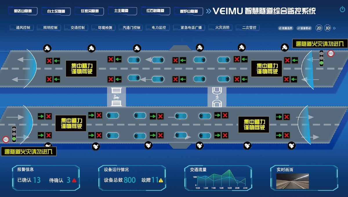 通过在洞口布设的微波车流量检测器,采用融合算法,实现了对隧道内车辆的实时检测与跟踪,能监测隧道的车速、车流、车数等状态,为隧道交通管理提供基础参考数据,和能耗车流量对比数据。