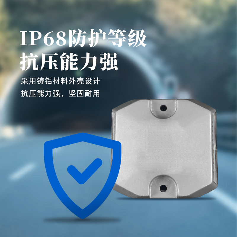 2、有源道钉以常亮或同步闪烁的方式工作,通过导线连接,电池、电路均可更换,更抗压,稳定性更强,寿命更长。
