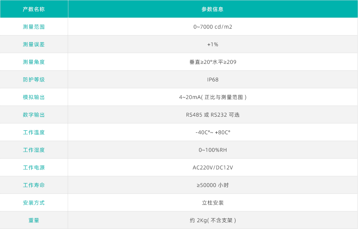 隧道洞外亮度检测器是锦州阳光针对长隧道灯光控制的特殊要求研发的现场实时光亮度检测设备。外壳为高级铝合金材料,防护等级均达到IP68,充分保证设备在野外露天等恶劣环境下工作的稳定性。